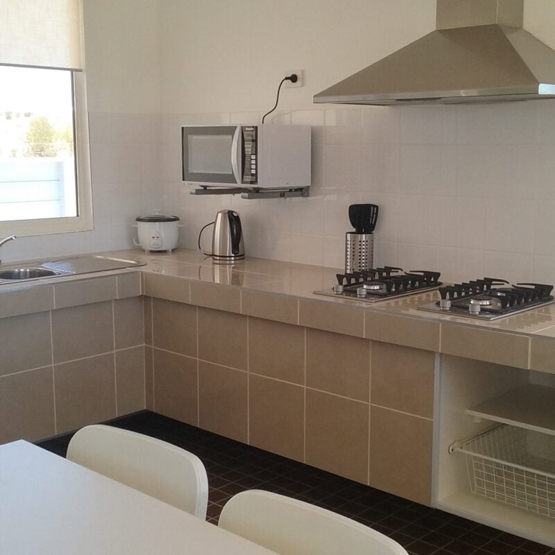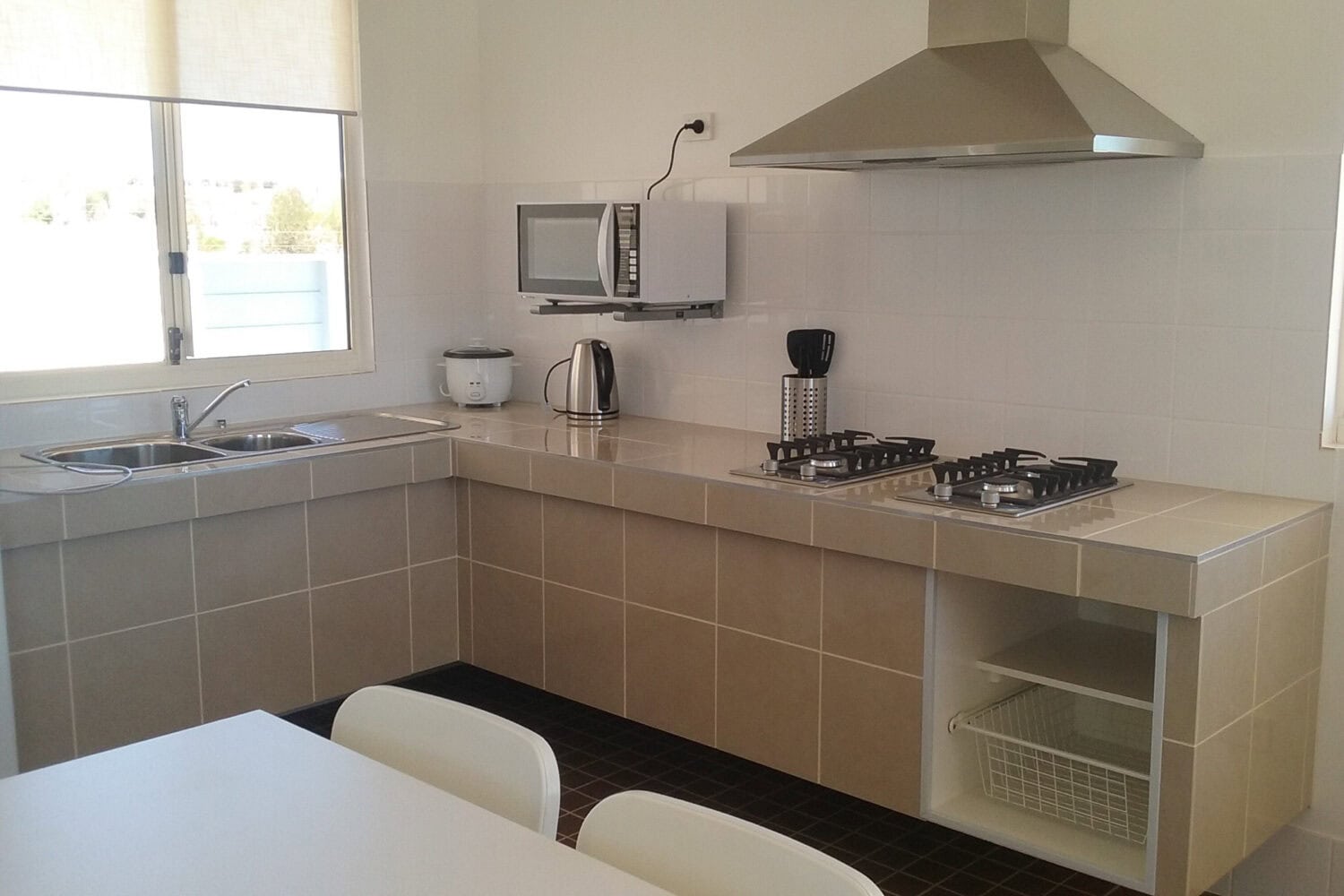 The building has sheltered outdoor seating and dining areas with the free gas BBQs nearby.