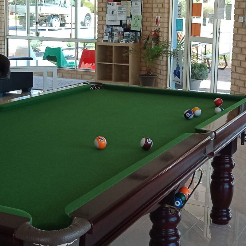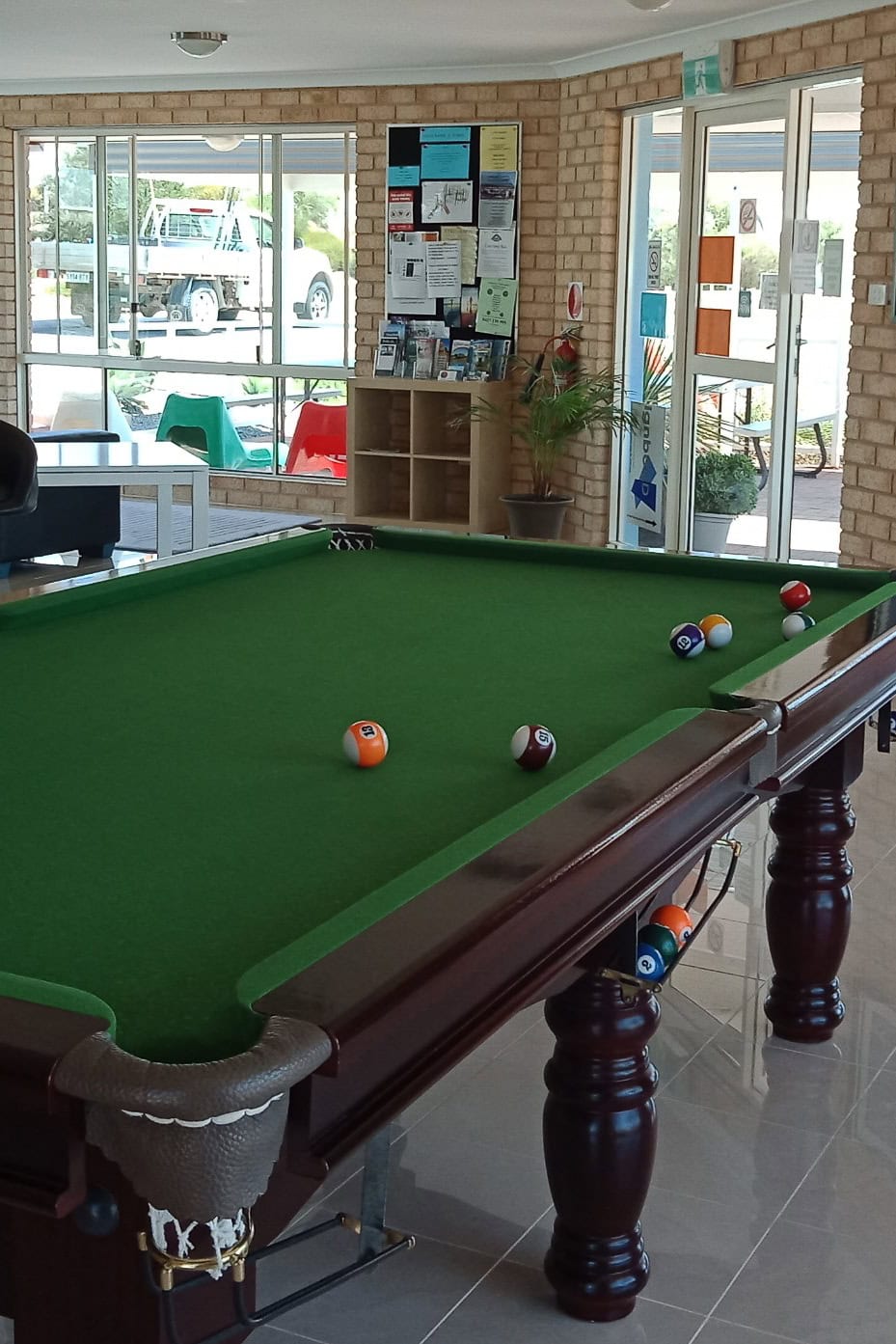 The large air conditioned recreation room has a pool table, large screen TV, family area, Kids toys,free book exchange, and a covered outdoor common area with adjoining BBQ facilities.