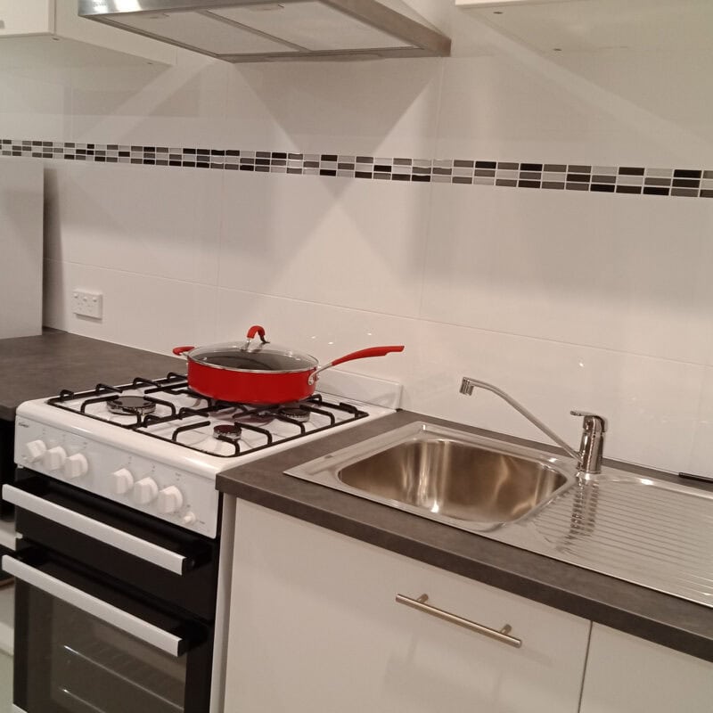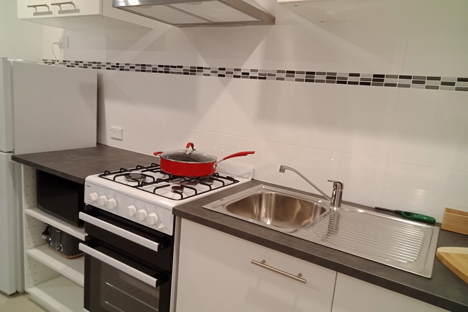 The camper’s kitchen is totally enclosed with all the comforts of home.